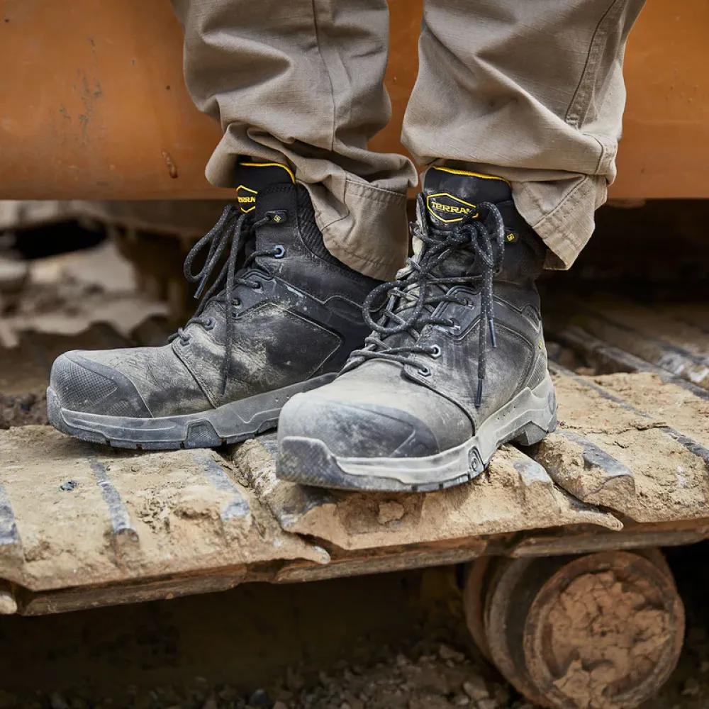 Streamlined, ultra-adaptable and made to move, the Terra® Carbine redefines work-ready stability with the introduction of EXOLOK™ external heel technology that locks in enhanced fit. TERRA® OMNICORE™ cemented construction elevates performance and protection—with a puncture resistant plate between a high-rebound PU midsole and an industrial-grade, slip-resistant rubber outsole. All-day support comes from the dual-density, high rebound EVA JETBOUND™ FOOTBED® insole. Completely waterproof, it’s the all-weather, all-terrain, all-purpose work boot that’s ready for your toughest days. Also available in 8”.